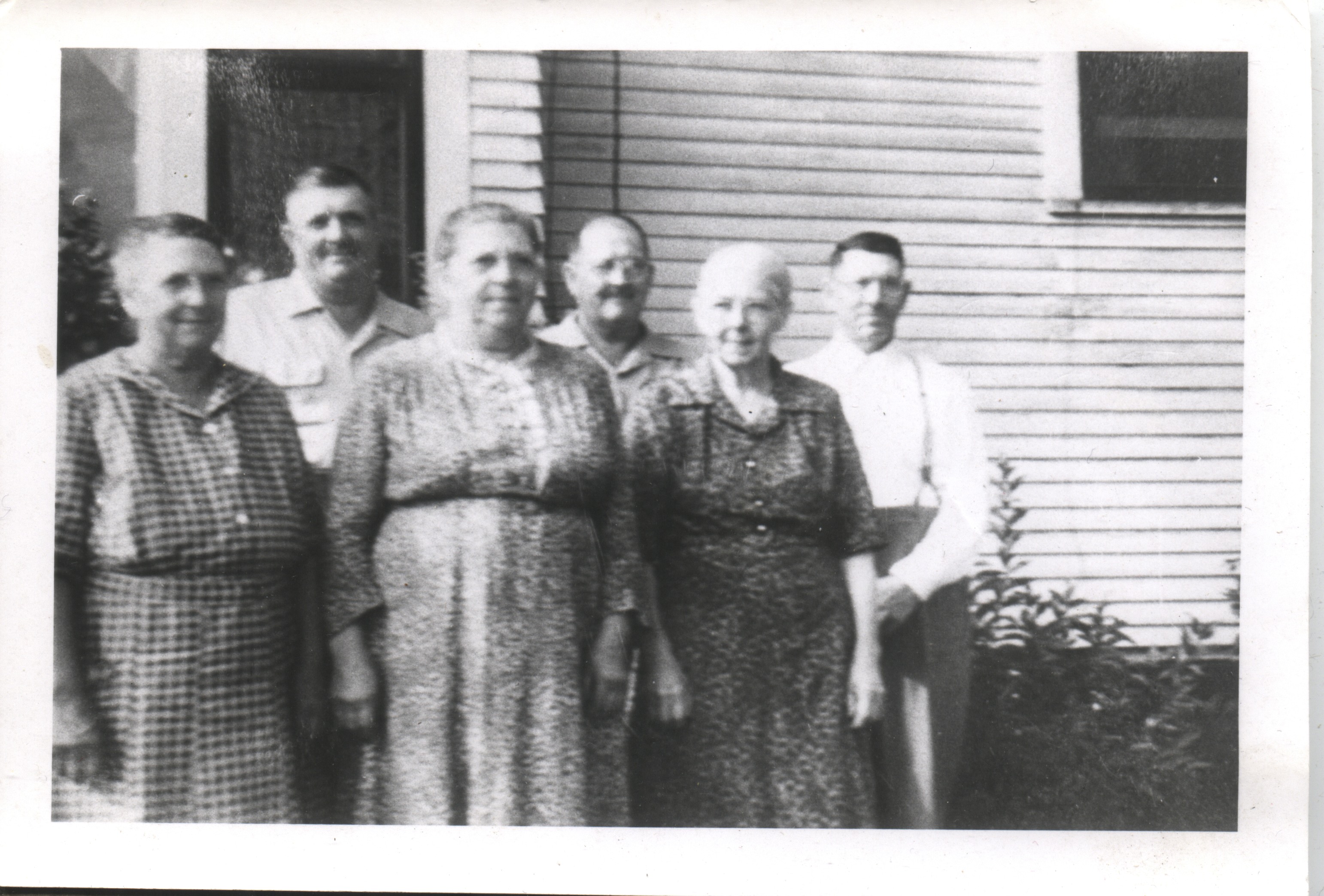 Children of Joseph & Anna Roth Reschly: left: Emma Reschly Roth, Elmer Reschly, Eva Reschly Boese, William Reschly, Katie Reschly Miller, Harry Reschly. 1945c | 0121.jpg