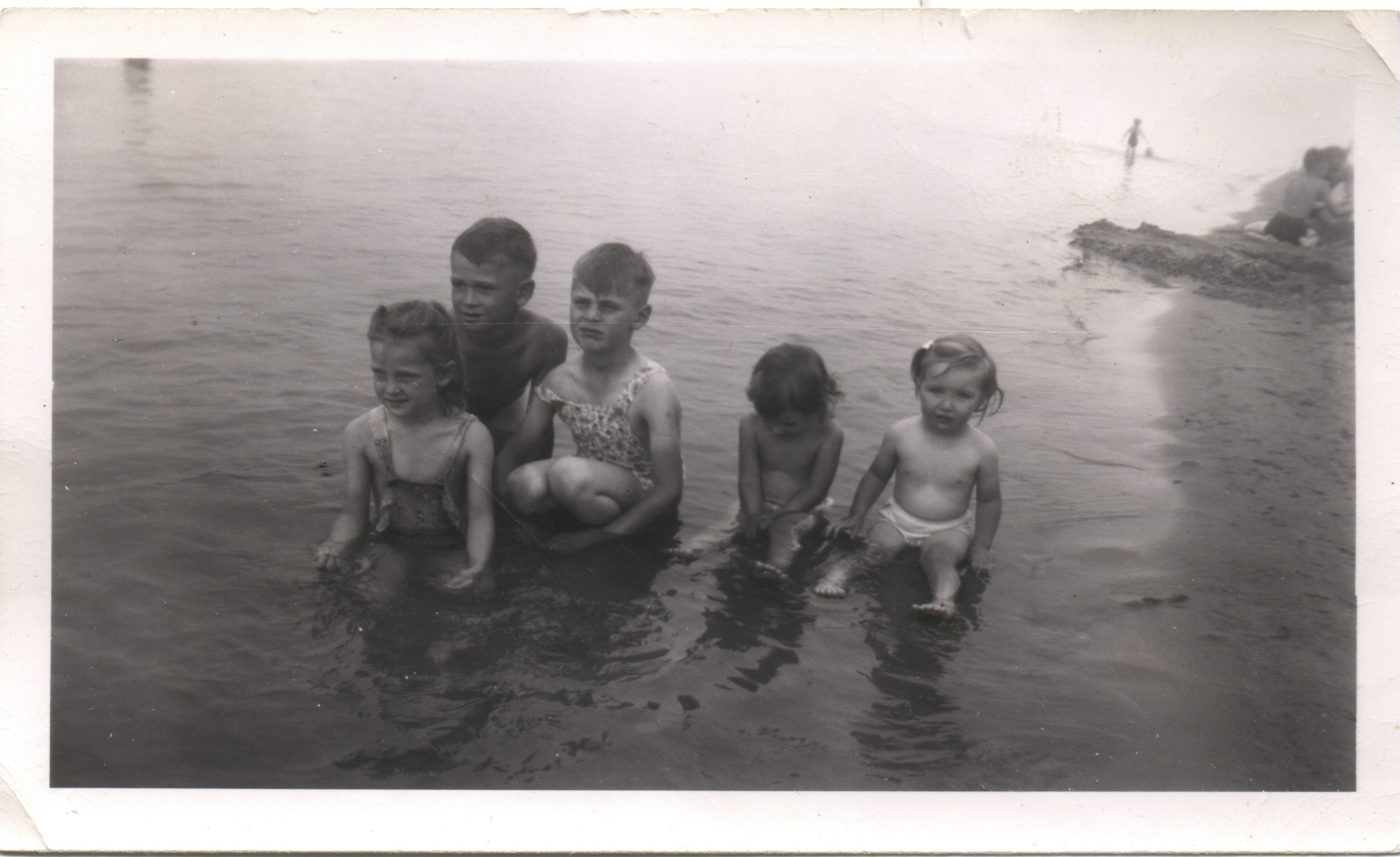 Lake Michigan 1947c Louise & Gary Reschly, Robert Kaufman, Joanne Reschly & Alice Kauffman.