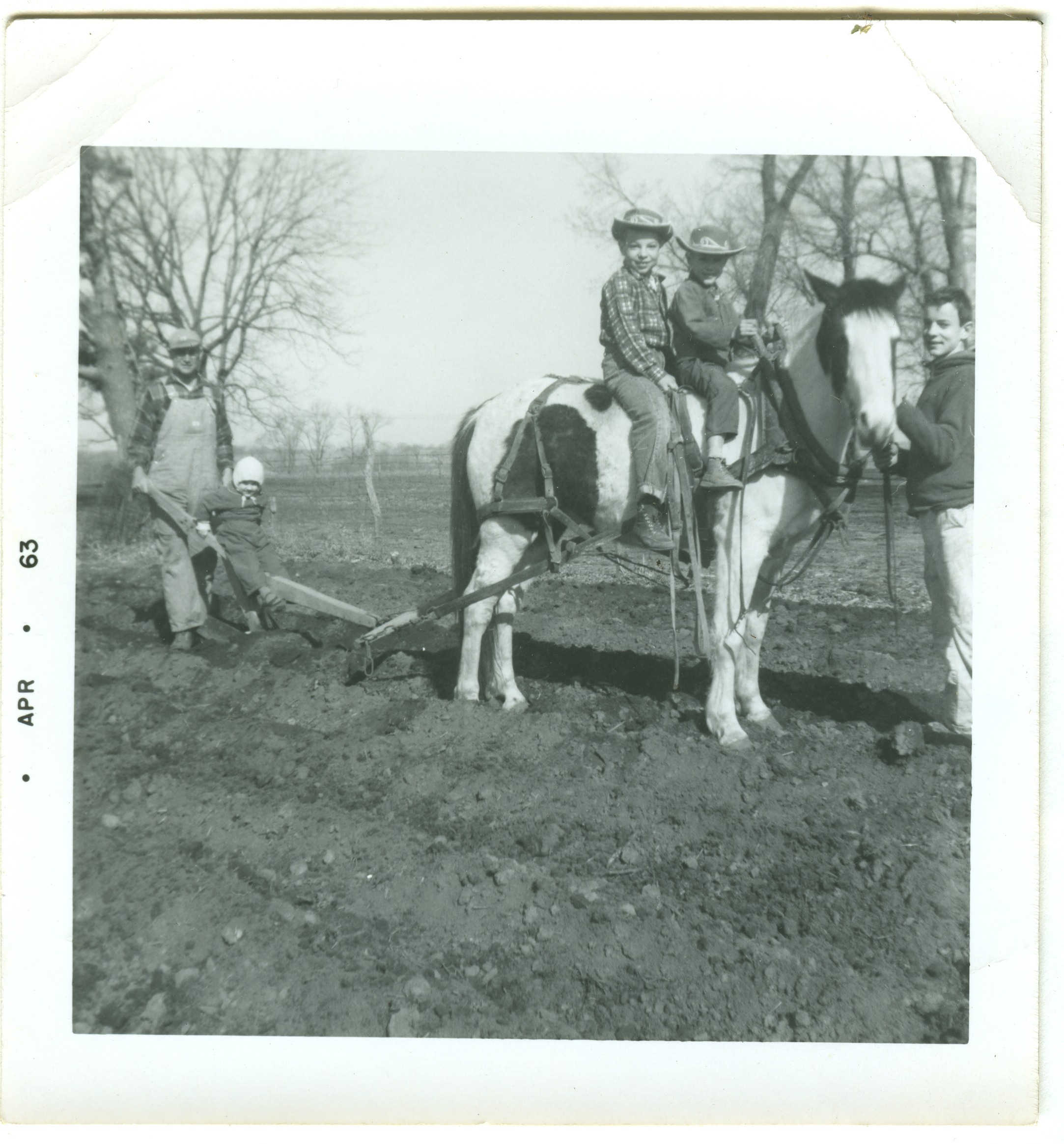 Ray Roth, unknown, Reynolds, Lamar & Larry Roth planting potatoes. 1963 see #1143